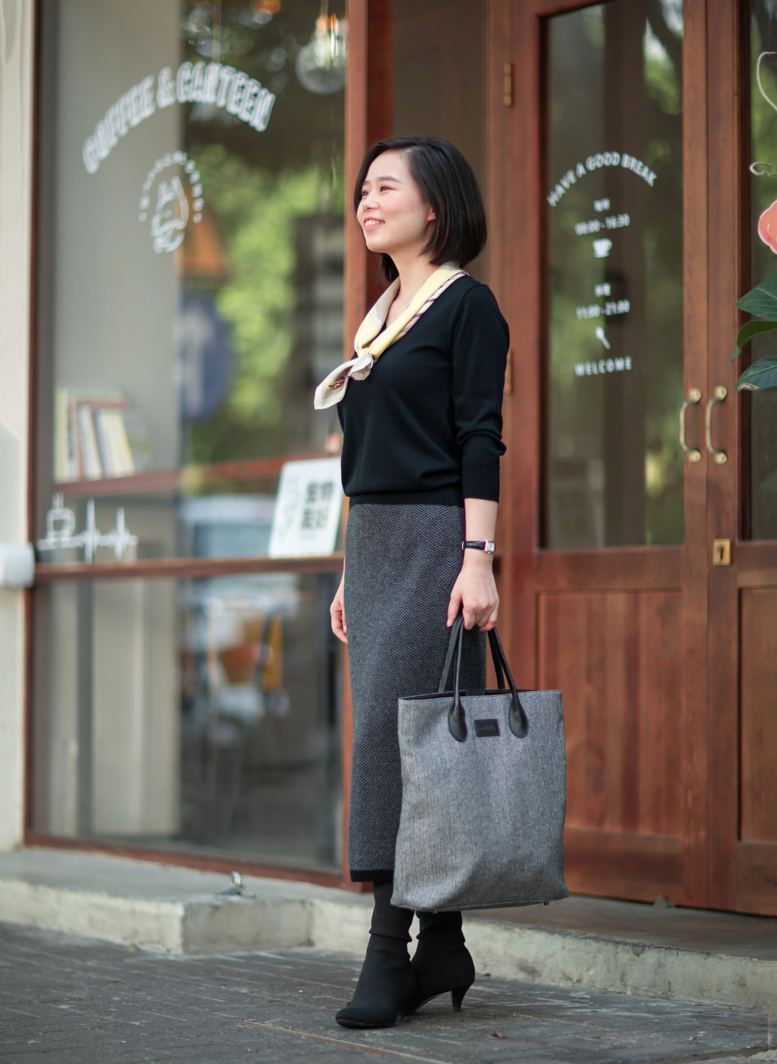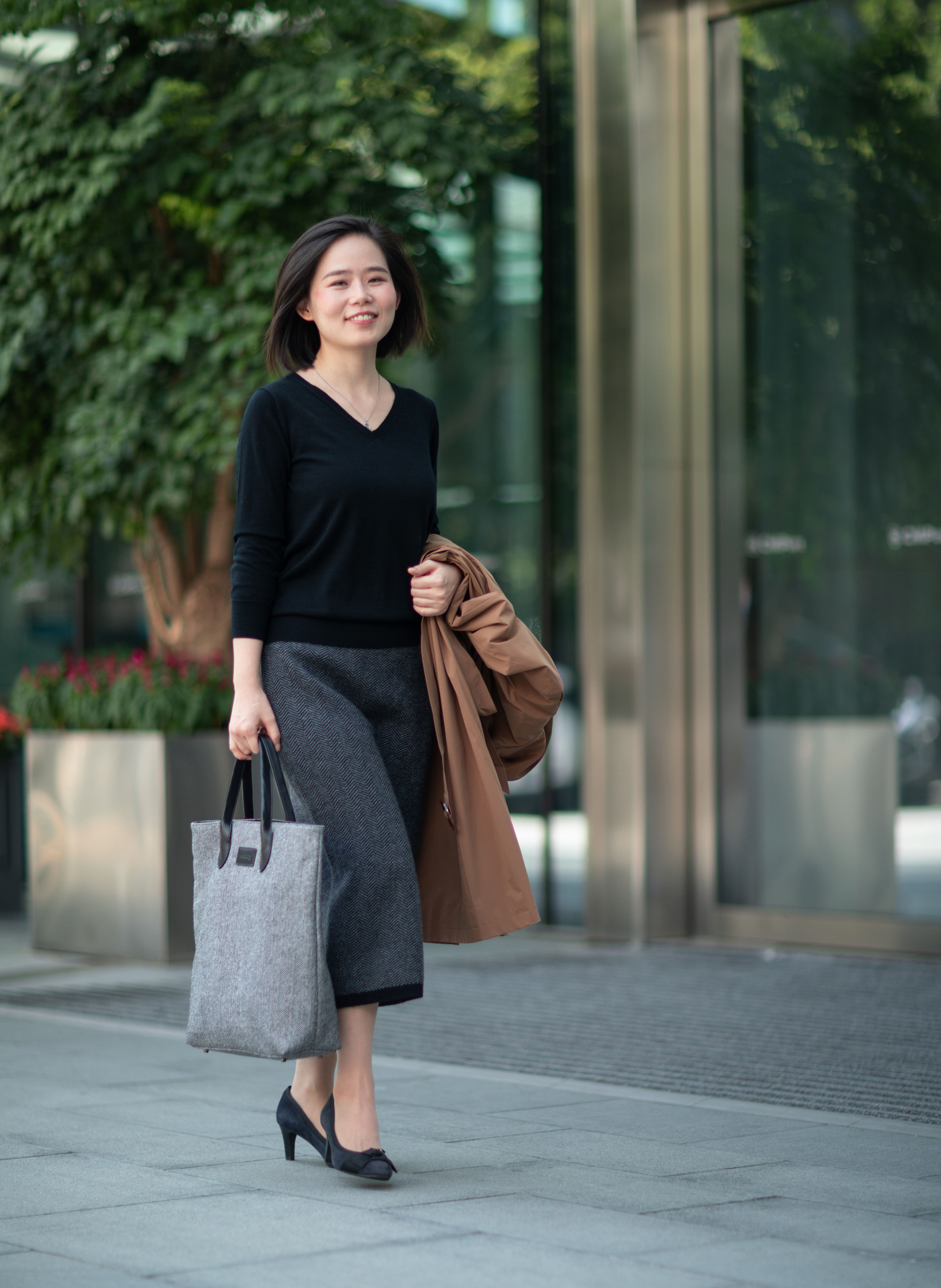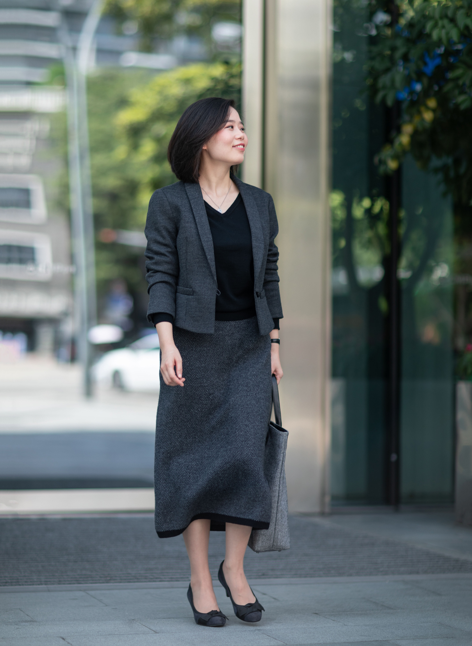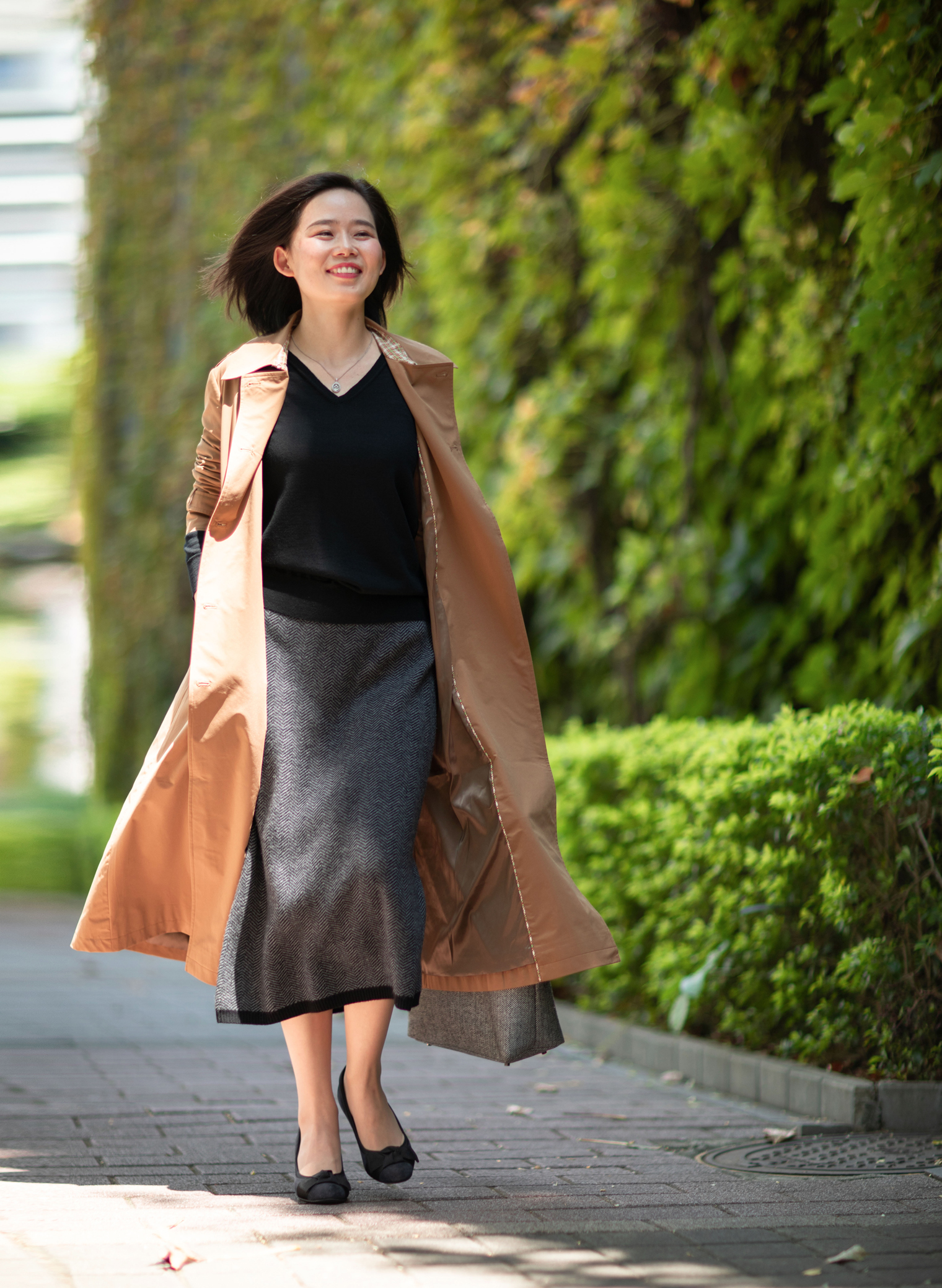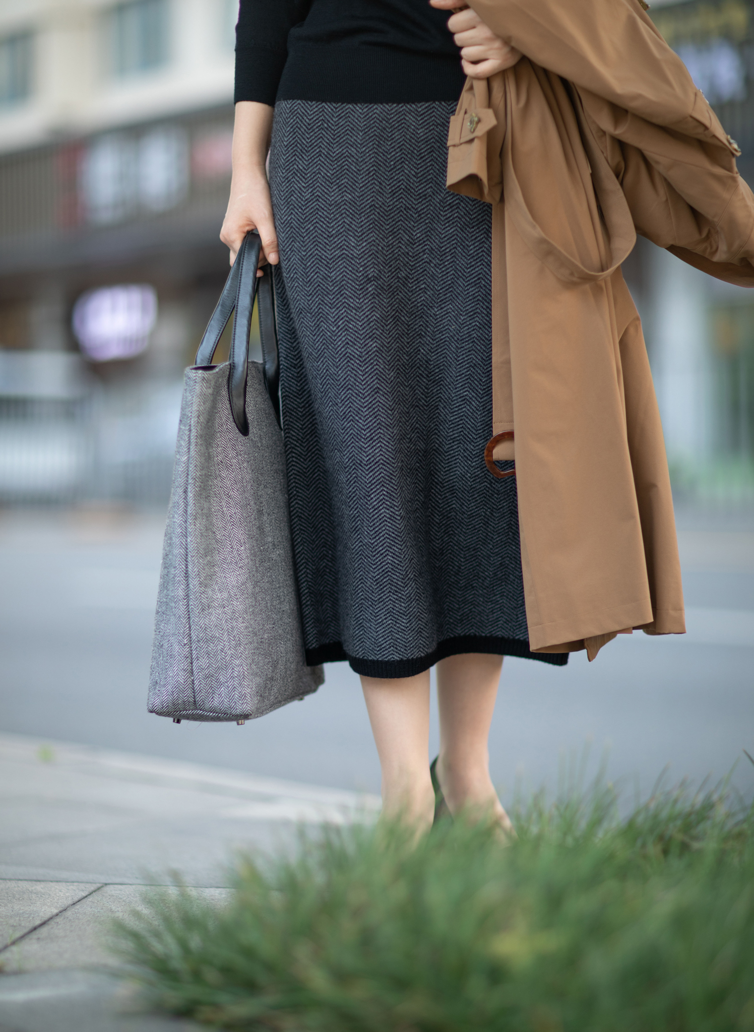 经典的人字纹、耐人寻味的肌理质感、羊毛的温暖氛围,带来这条质地、色彩、图案都呈现出炼达的平衡的全羊毛铅笔裙,是冬日舒身保暖又能行走职场的佳伴。