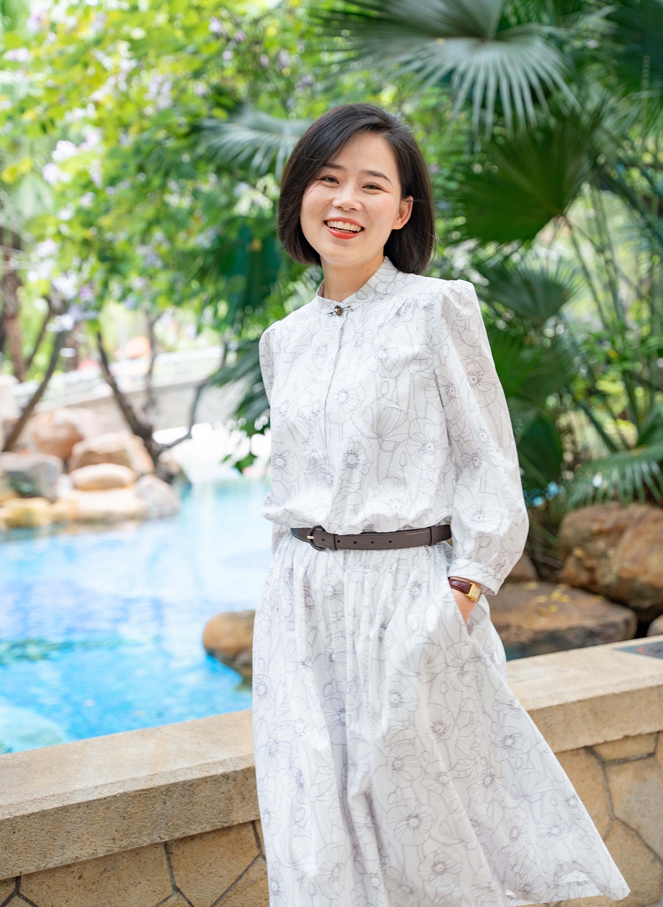 连身裙选用进口全棉镂空印花面料,亲肤透气,有如大自然氧吧里的轻快,为舒适穿着奠定基础。淡雅的色调呈现视觉中的轻松,即使走入炎热季节也能告别黏腻闷热,给人以清爽的享受。印花中有镂空的细节设计,含蓄而迷人,安静地描绘淑女内心的恬静与通透,小立领、暗门襟设计表达一份文艺复古情怀,腰部运用松紧营造出微微起兜的效果,洋溢着迷人又随意的优雅,为淑女带来无所不在的闲适美丽。